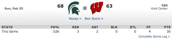 Davison’s previous career high of 20 points came against the Badger’s in-state basketball rival, Marquette. He also dropped 19 in last Monday’s OT defeat of our Gophers.