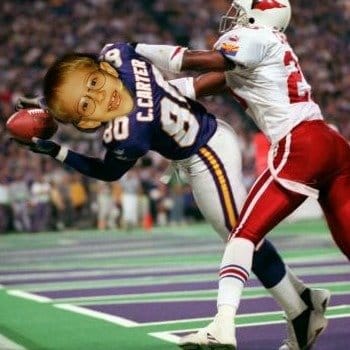 When you were dragging your toes across the blades of grass that were, if only for that one throw, the last millimeters of imaginary in-bounds turf between you and that coveted first down while you yelled “CRIS CARTER!!!”, you were ALWAYS fantasizing yourself in a purple jersey.