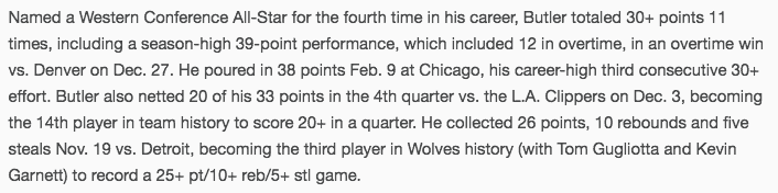 If you want to make the argument that Jimmy’s games played (59) in comparison with the Raptors Guard (80) is what held the Timberwolf back, that’s understandable.