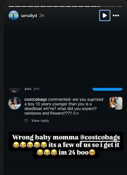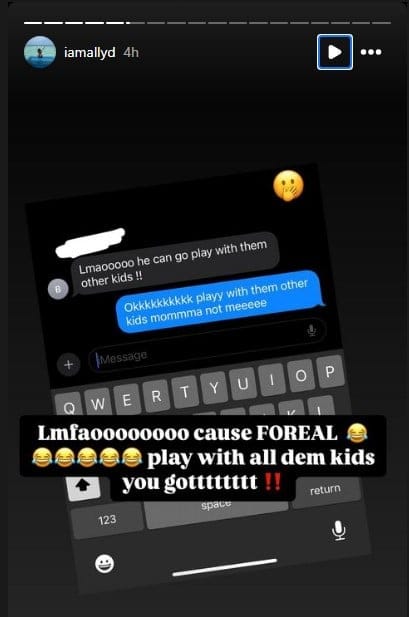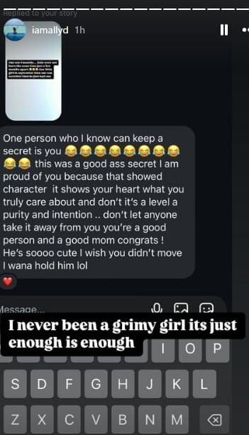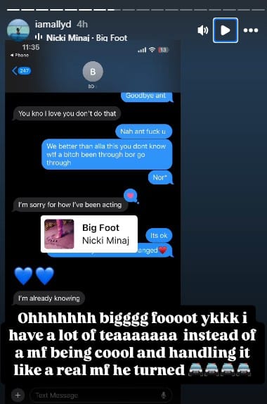 All we know about this new alleged baby mama is that she goes by “Ally D” on instagram (handle: @iamallyd). She alleges Ant’s fatherhood in her stories. Along with photos of the DNA test above, her screenshots include texts that she claims are from Edwards.