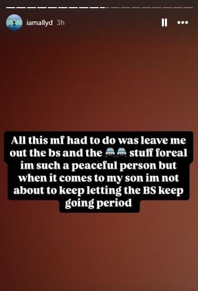 All this mf had to do was leave me out the bs and the stuff foreal im such a peaceful person but when it comes to my son im not about to keep letting the BS keep going period