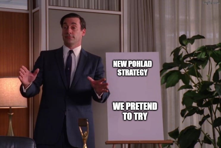 Or… and hear me out here… they could PRETEND to be in on players that sign elsewhere! That way, fans will think they’re trying to compete, and they WON’T have to actually spend the money. GENIUS!