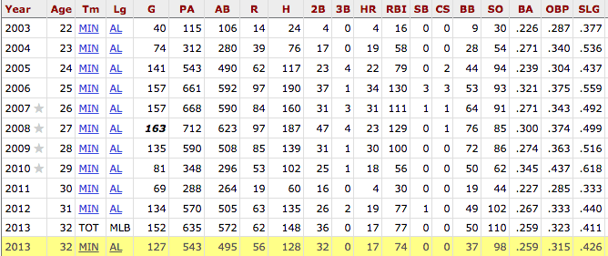 ARLINGTON, TX – AUGUST 30: Justin Morneau #33 of the Minnesota Twins at Rangers Ballpark in Arlington on August 30, 2013 in Arlington, Texas. (Photo by Ronald Martinez/Getty Images)