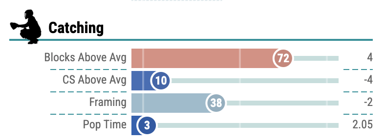 As this stands, neither Caratini or Jeffers would be lauded for their glove work. That is why Vazquez was able to play 65 games despite being a black hole on offense.