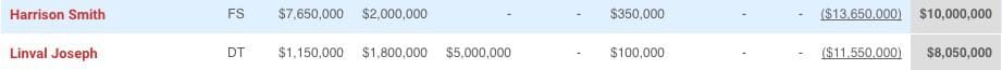 18 MILLION NFL SALARY CAP DOLLARS = 2 TOP DEFENSIVE PLAYERS (Harrison Smith + Linval Joseph Caliber)