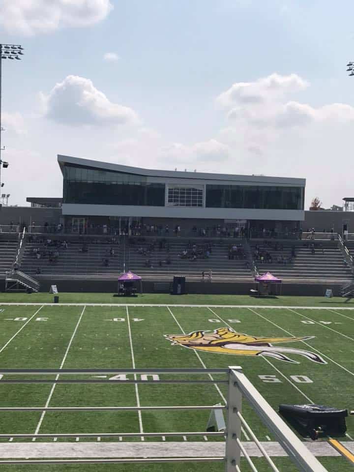 After checking in and recording a few interviews for KLGR and The Scoop (stay tuned today for those), it was time to head off to the practice field. TCO also offers a beautiful mini-stadium for game action. The Vikings hope to be able to host high school football games, in the near future, from TCO Stadium.