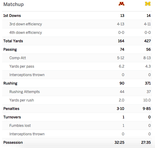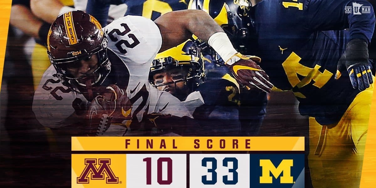 #Gophers fall in Ann Arbor 33-10 as Michigan racks up 371 rushing yards.